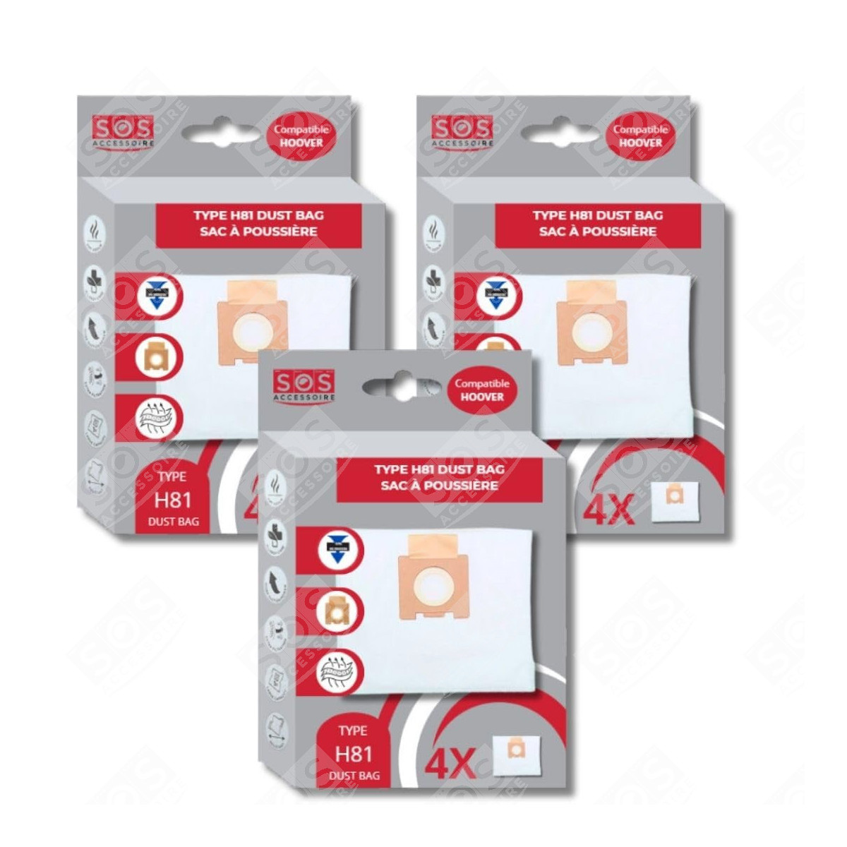 Lot de 3 boîtes de 4 sacs microfibre H81 Compatibles pour Aspirateur HOOVER